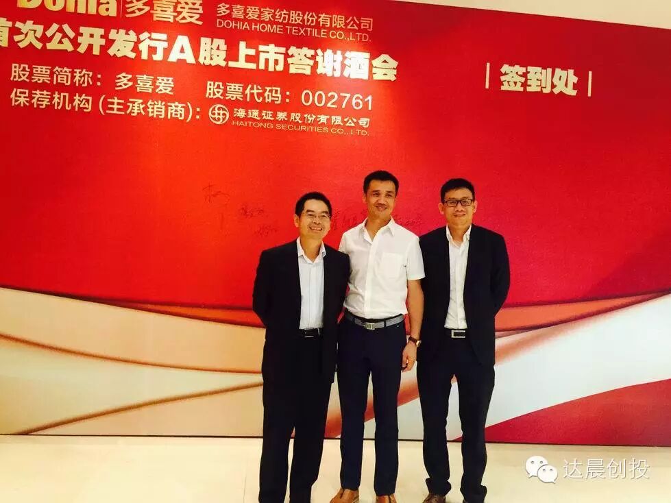 下图为多喜爱高管与我司投资副总监在上市仪式上合影: