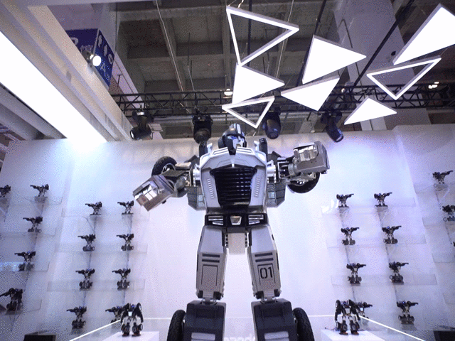 另外,超巨型星际特工的每根手指都有3个联动关节,每个关节均采用数字电传动驱动控制,毫不夸张的说,它是目前国内最高、最重的机器人,同时也是最大功率的伺服控制与人工关节系统,其中体现的技术水平不言而喻。接下来应该放个动图让大家更直观感受超巨型星际特工散发的独特魅力。